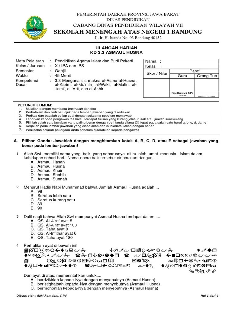 Soal Materi Asmaul Husna Kelas 5 Semester 1 : Soal Agama Kelas 10 Sma Ma Smk Semester 1 2 2021 - Mampu memahami asmaul husna , ,.